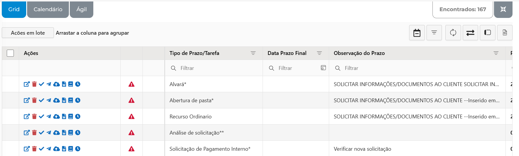 Para acessar o prazo dentro da pasta selecionar o ícone Imagem 32, Imageme abrirá a seguinte tela: