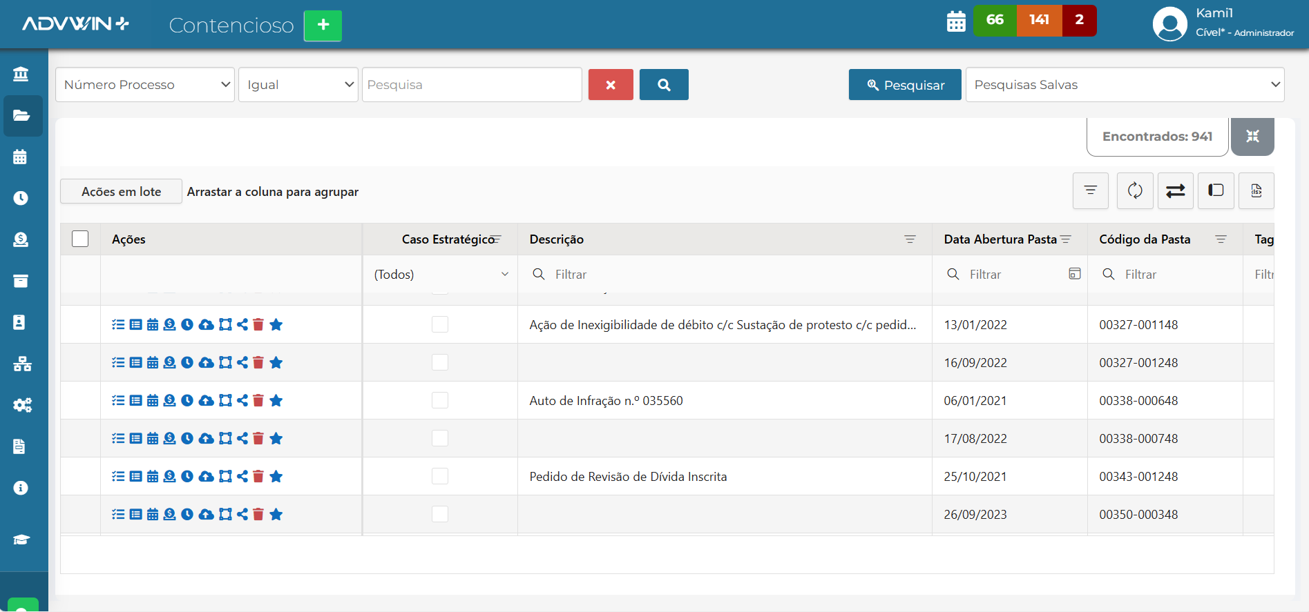 Clique duas vezes sobre a pasta pesquisada e o ADVWIN+ abrirá as informações dessa pasta em uma nova Guia.