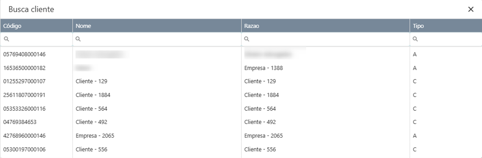 3. Filtrar: realiza filtros de pesquisa através das informações da tabela.
