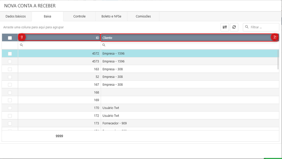 8. Filtrar: realiza filtros de pesquisa através das informações da tabela.