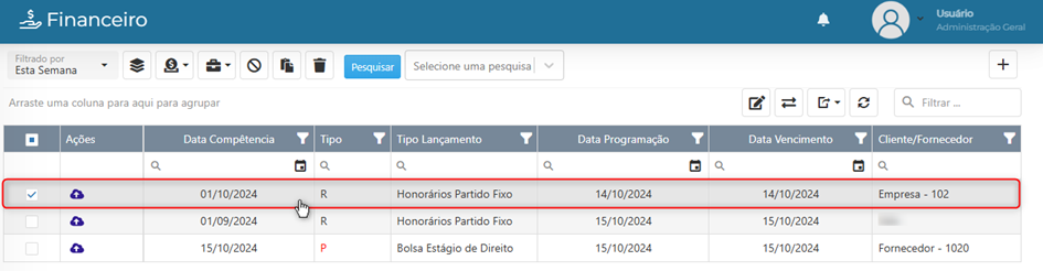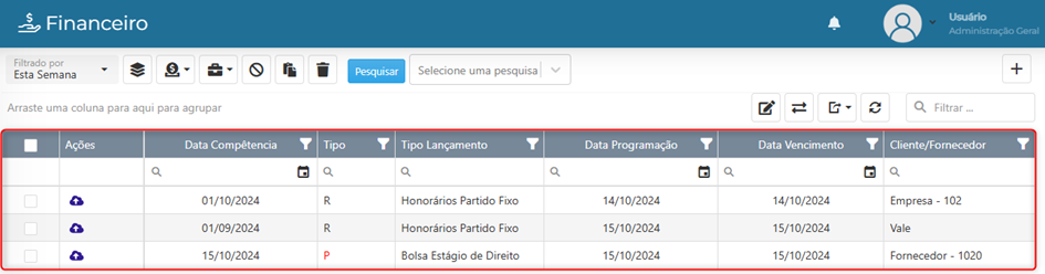 - A letra R indica ‘A Receber’.