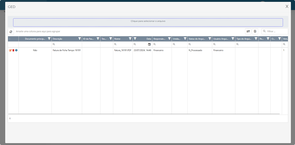 - Após salvar as CPR’s, é possível visualizar as informações preenchidas e adicionar GED’s nas CPRs, basta clicar no ícone: