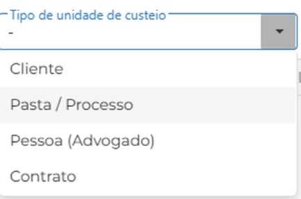 4. Tipo de unidade de custeio: Selecione o tipo da unidade de custeio.