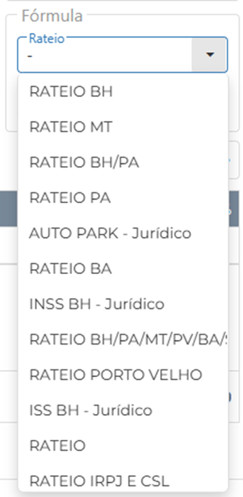 10. Rateio: Selecione a fórmula que será utilizada no rateio.
