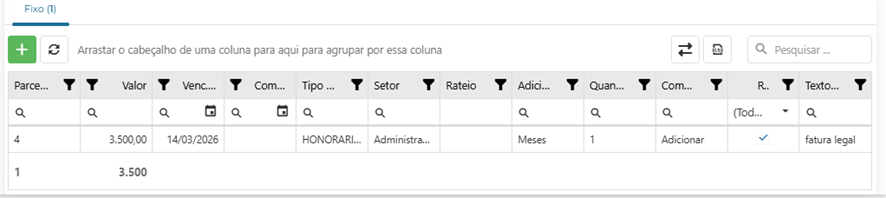 Ressalta-se que, caso o sistema não localize a fatura fixa de acordo com o filtro de pesquisa, é importante verificar como a CPR está cadastrada. Dependendo do escritório, poderá ser necessário alterar o tipo de origem da CPR para "contrato".