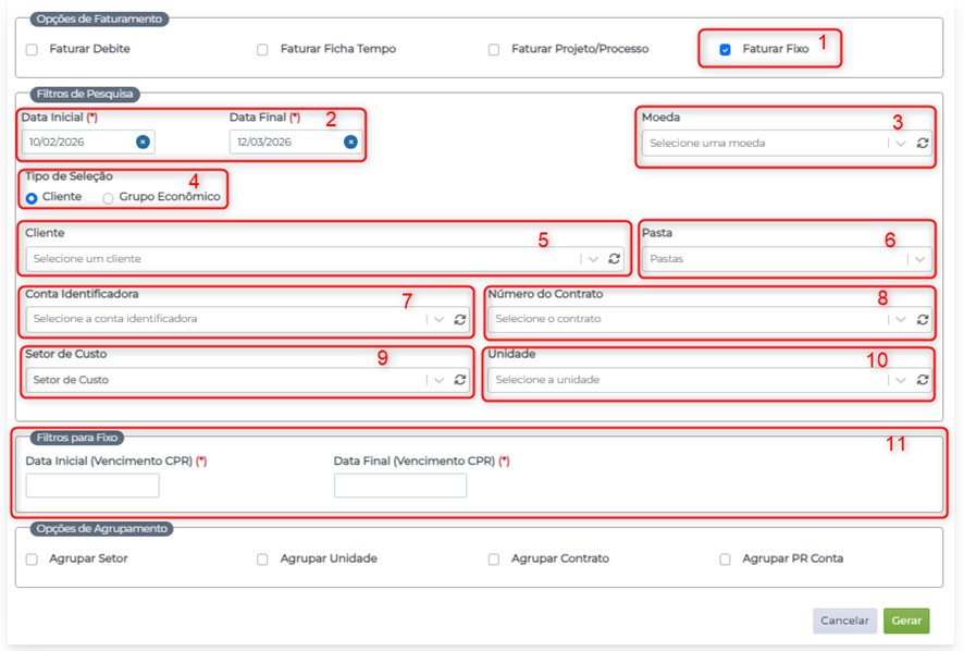 11. Definição se esta regra de fatura fixa é a atualmente utilizada;